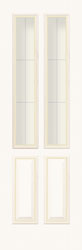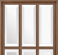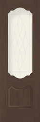 - полотно под остекление с дубовой раскладкой, укомплектованное стеклянными элементами толщиной 6 мм с фацетом по периметру, с прозрачным или сатинированным стеклом;