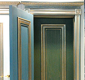С помощью элементов декора дверной блок можно скомпоновать как строгий, аристократический, так и торжественно-величественный для залов и кабинетов.
