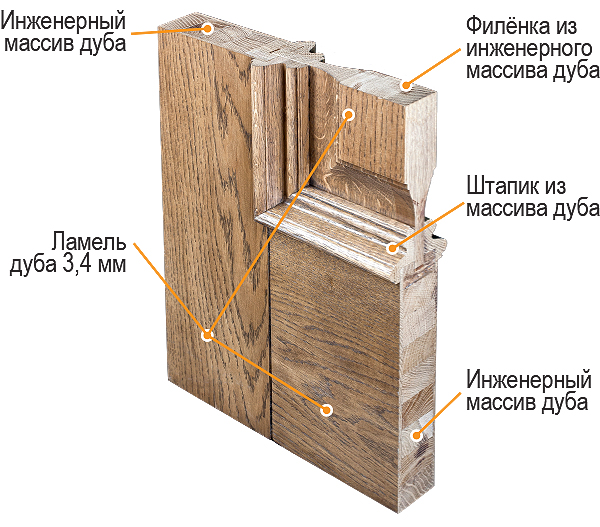 Выверенный конструктив и технология производства позволили рационально использовать один из самых интересных и долговечных видов древесины - дуб.