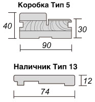 Наличник - массив дуба. Безгвоздевое крепление. Два вида: Тип 5 и Тип 5/1, 90 мм.