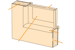 • каркас - клеёный массив хвойных пород и МДФ-плита